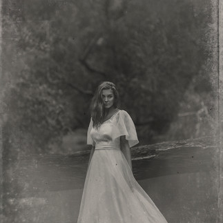 A few days later, we took that same dress and changed the scene completely - this time heading down to a creek. Bianca, ever the legend, was more than happy to do anything for the shot. She waded into the icy water, barefoot and glowing, and brought this fierce, untamed energy to every frame. There’s something powerful about a woman in a wedding dress standing in a rushing creek - it’s vulnerable, wild, and stunning all at once.